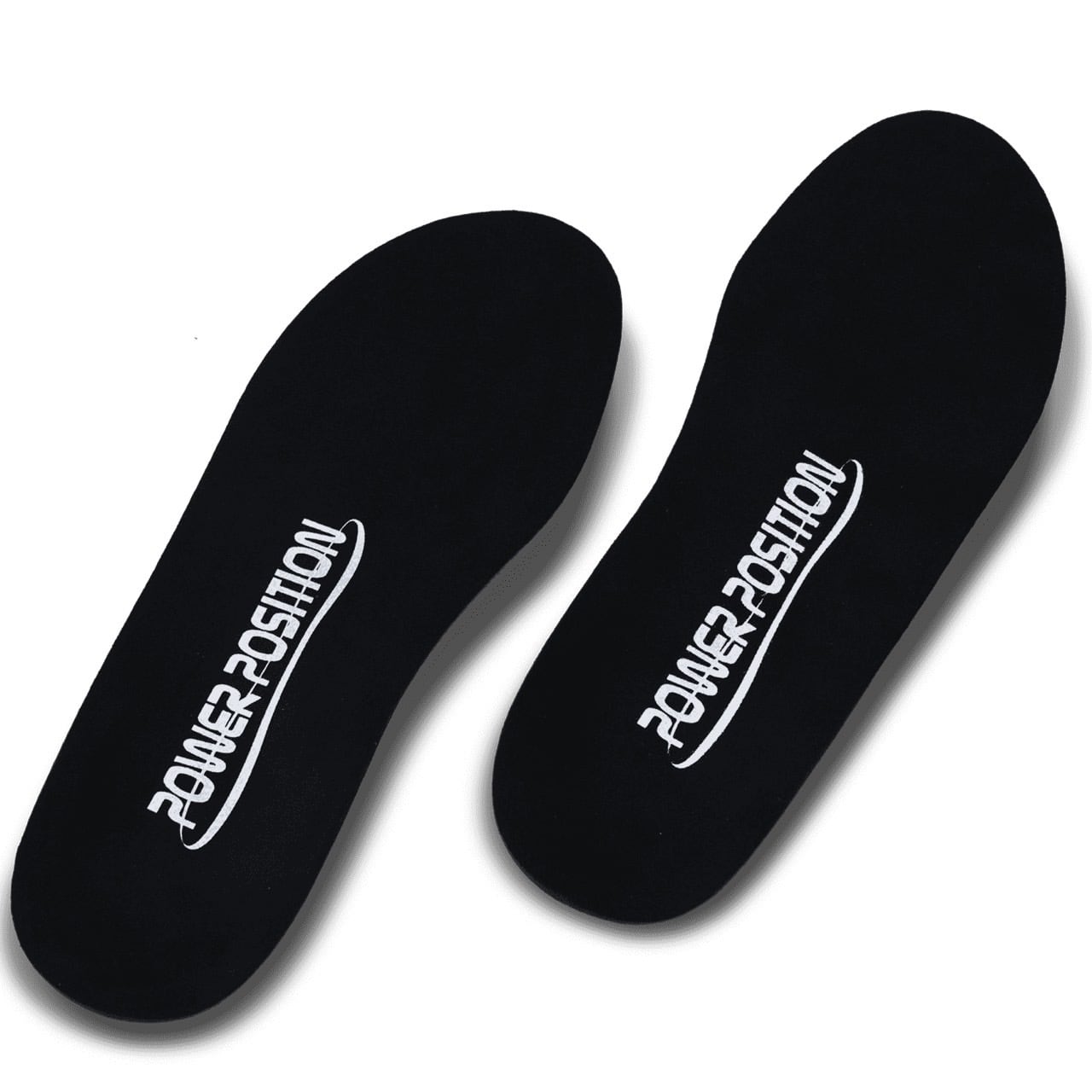 パワーポジションでは、弾力を保ちながら歩行できるようにするために、かかと(踵骨)と親指の付け根(母指球)と小指の付け根(小指球)の3点を特殊素材でグリップし滑りを止めて支えられるよう作られています。そうすると足裏のアーチ状を上記の3点(前後)で支えていて動かないことによって沈み込みを防ぎます。しかし、足裏の真ん中が支えられているわけではないので、足底のしなりを実現して自然な歩行を助けることができます。